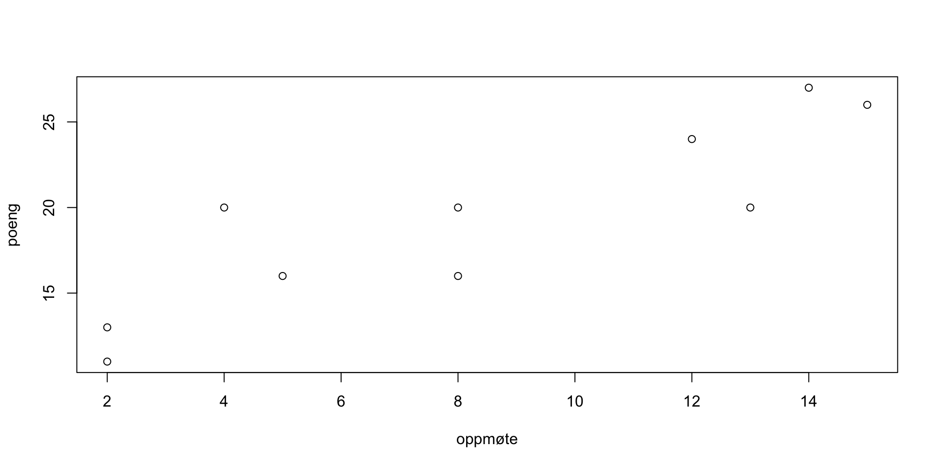 lm(formula = oppmøte ~ poeng)