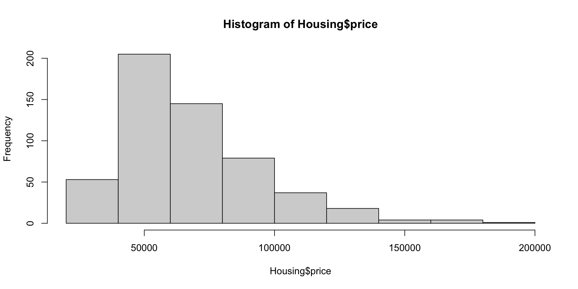 Vi må installere noen pakker og da får vi Housing datafilen gjennom pakken Ecdat.