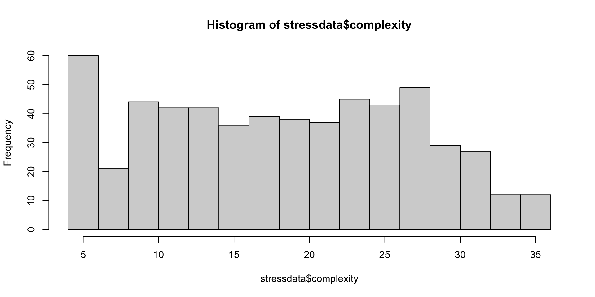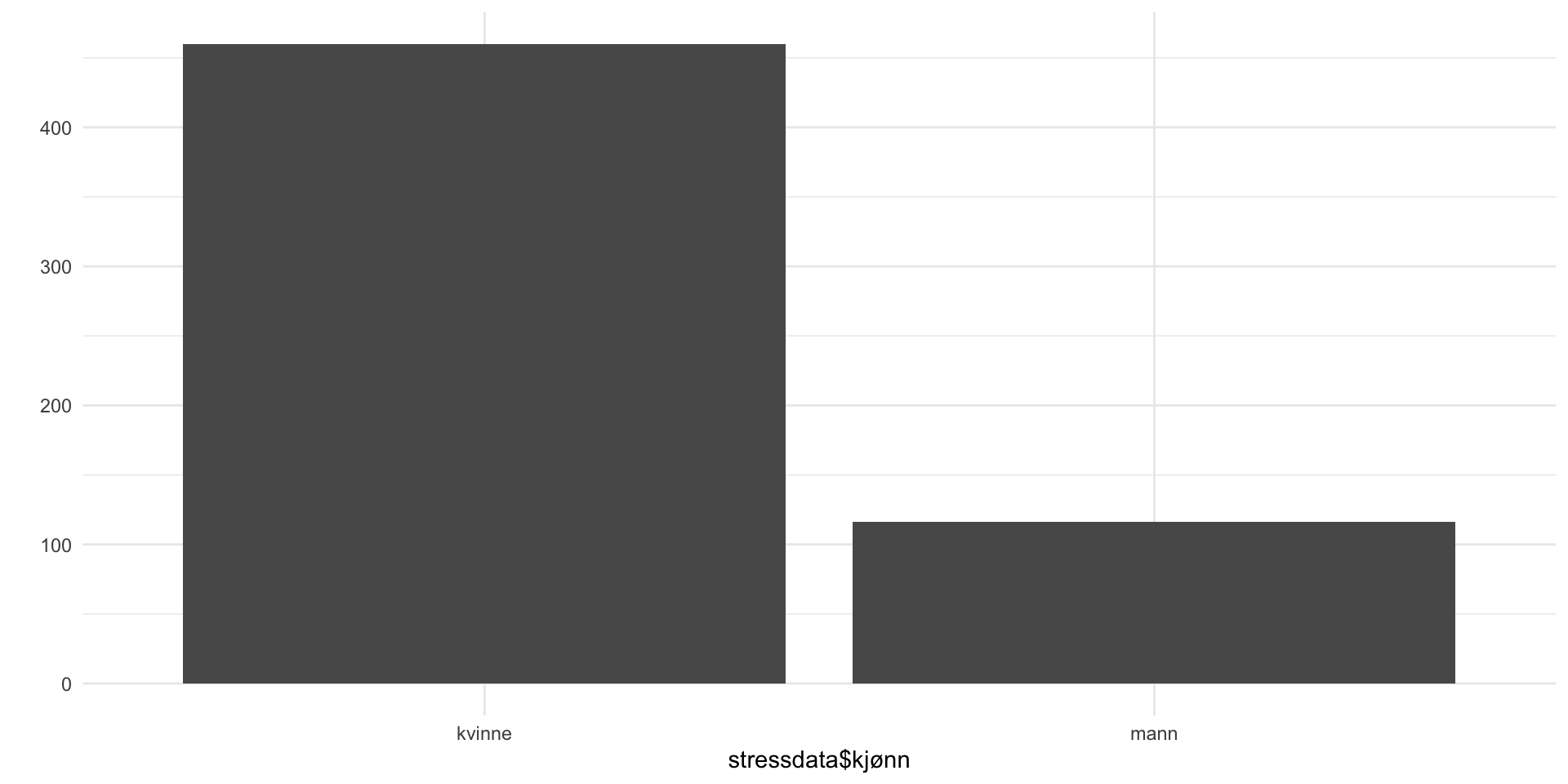 library("tidyverse")stressdata <-read.csv("../data/stress_complete.csv") stressdata$X <- NULL#fjerne unødvendig variabel "X"dim(stressdata)#rader og søyler